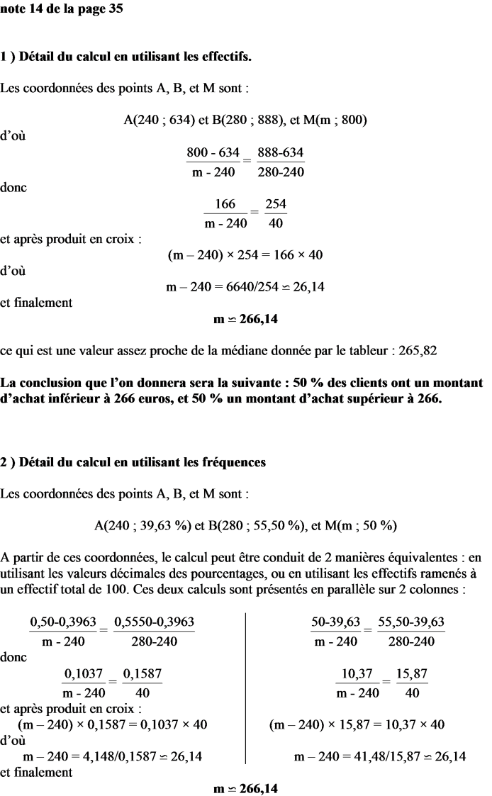 Certaines notes sont développées en plusieurs parties, par exemple :